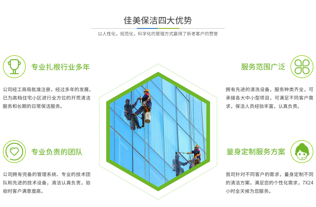 马鞍山市佳美保洁服务有限公司是一家经工商部门批准,具有法人资格专业清洗,马鞍山保洁服务的公司,自创办以来,一直致力于企业,家庭,宾馆,学校,别墅,酒店,商厦,公共设施等场所提供科学的日常保洁和清洁保护的服务公司,有着丰富的管理服务和保洁经验...